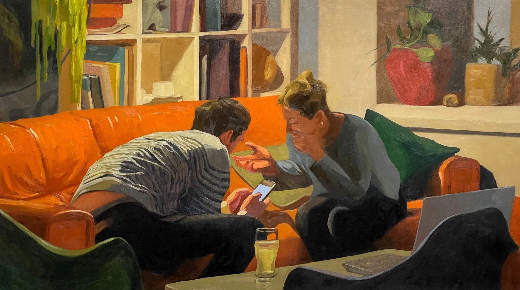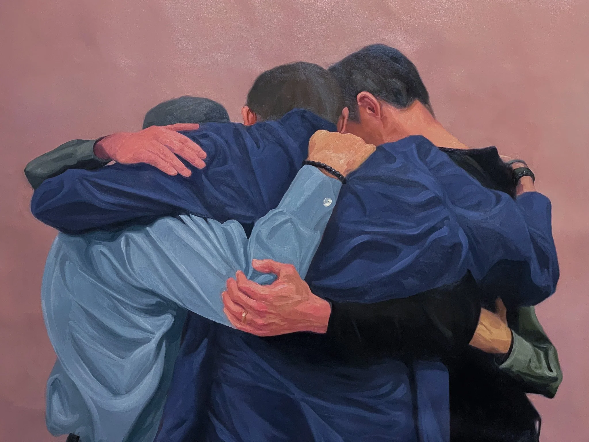 Andrew Nelson is an oil painter working between London and his birthplace of Baltimore. His large-format paintings portray scenes of intimacy and domesticity, exploring how real-life togetherness manifests in the post-internet social environment of the current century. Andrew’s experience painting from life imparts nuanced color and light to his studio work, emphasizing the humanity of the subject matter. Andrew is a Yale undergraduate alumnus and began painting professionally in the Fall of 2021.