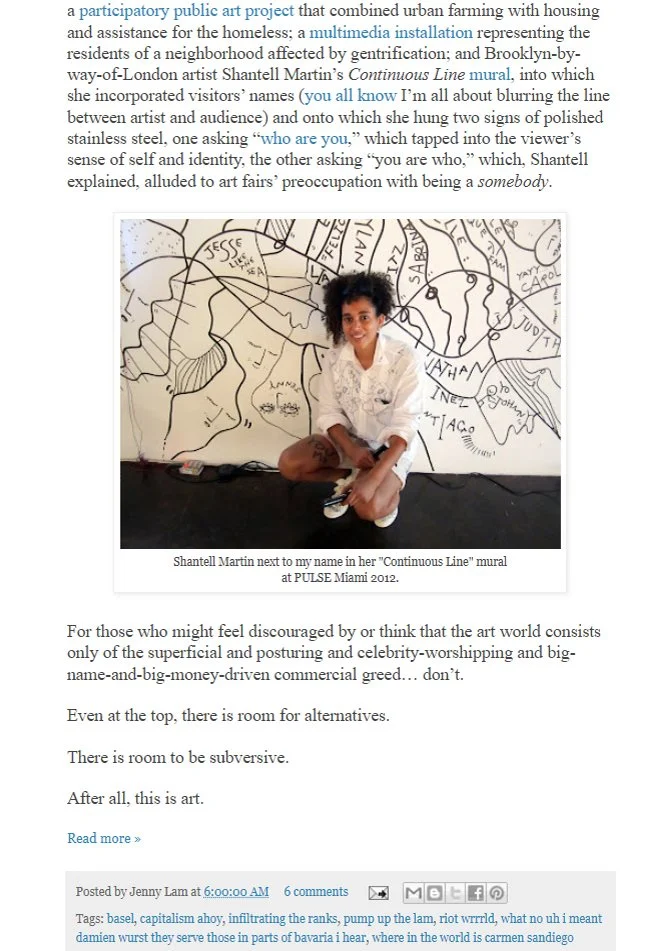 Can you believe this was a decade ago?: Throwback to December 2012 when I went to Miami for the first time and then wrote my now-classic blog post “Notes from [an] underground [art scene advocate / Miami Art Week virgin].” The middle paragraph of image 3 might be one of the funniest things I’ve written. Also, check out the tags I wrote (bottom of image 4). And the 5th image is the kind of comment I love receiving, and what makes it all worth it.