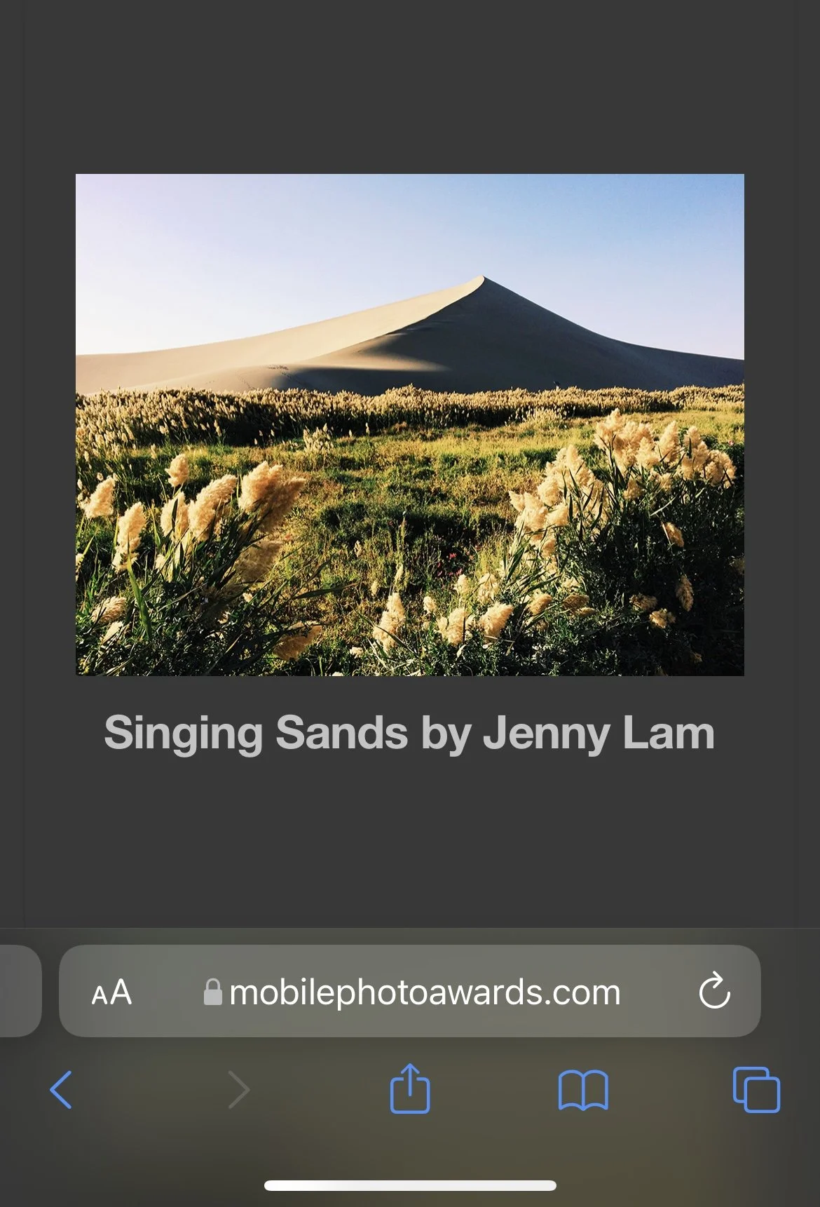 What a wonderful surprise*: I’m honored to share that I’ve received an Honorable Mention in the 11th Annual Mobile Photography Awards for my 2017 photo Singing Sands in the Travel/Adventure & Transportation Category! Thank you, MPA!
